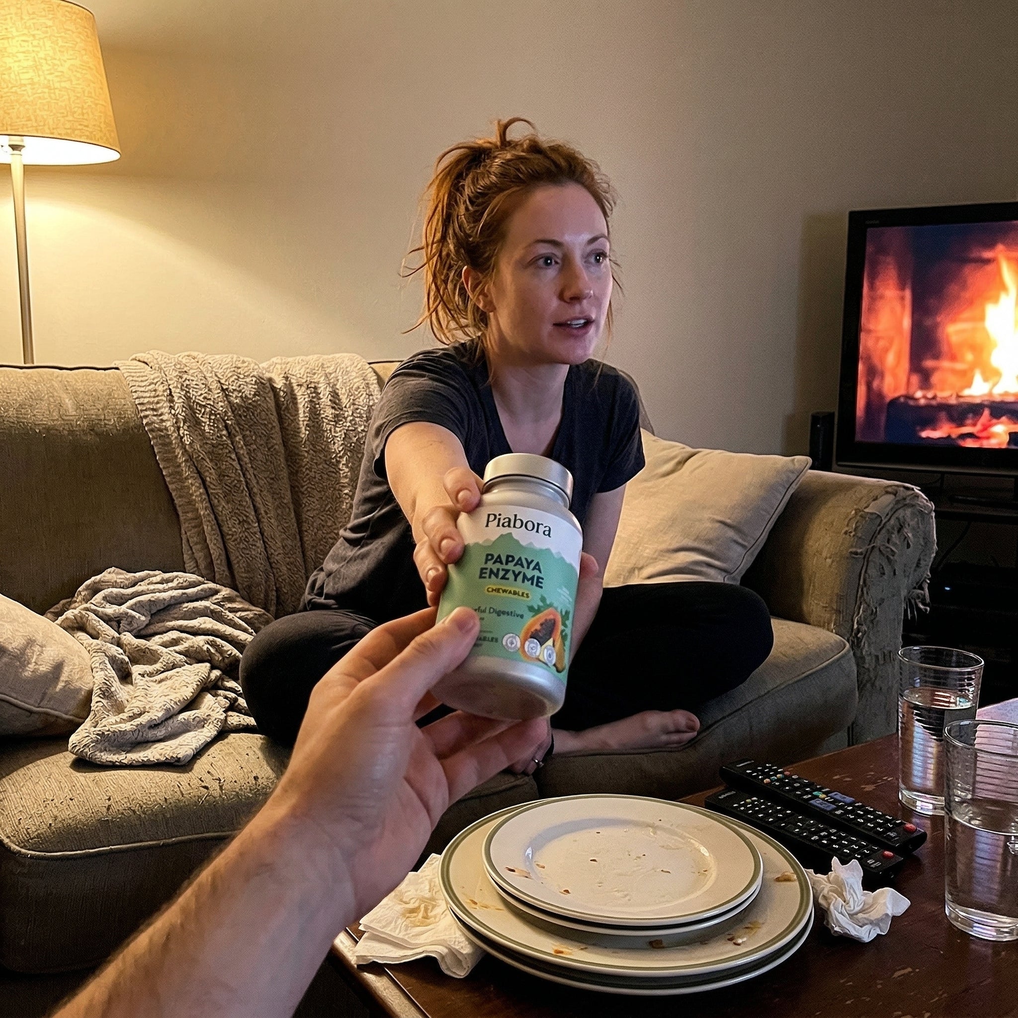 Antacids and Gas-X treat symptoms after they start. They don't help your body break the food down. Papaya enzyme works at the source — it gives your stomach the extra help it needs to break food down before the problems begin. One chewable after a meal. Pineapple flavor. Works in minutes.