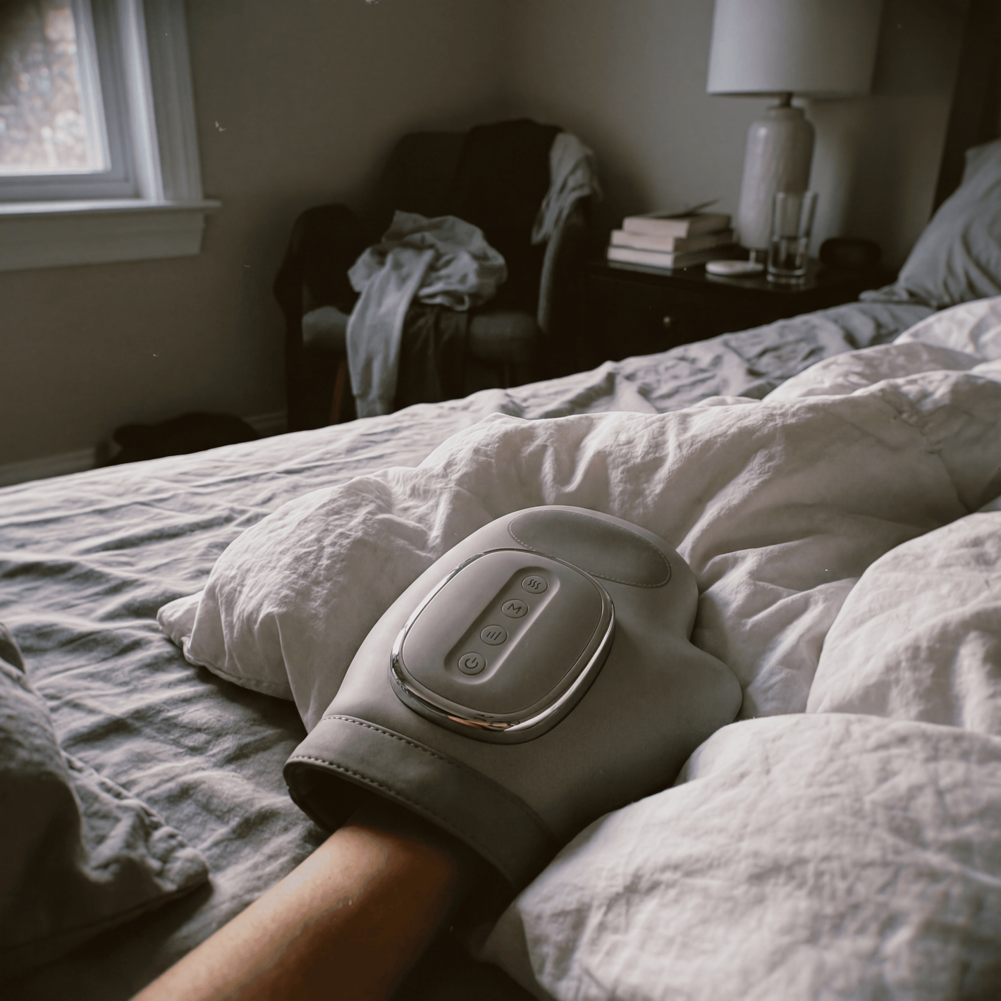 Morning stiffness happens because fluid pools in your hands overnight when you're not moving them. This massager drains that fluid out through your lymphatic system and gets fresh blood circulating again. Most people use it at night before bed and wake up with way less puffiness and stiffness. Some do a quick session in the morning too if their hands are really bad.